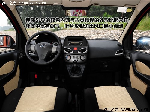 哈弗M1的車身尺寸為3645mm*1625mm*1630mm,在原型車精靈的基礎(chǔ)上,增加了大面積的灰顏色車身包圍,僅僅是通過這樣簡單的裝飾,M1立馬變得富有野性,甚至總讓人有著去野外玩一陣子的沖動(dòng)。不僅如此,前后杠底部加裝的護(hù)板在視覺效果的同時(shí),也的的確確提高了車輛的通過性。值得表揚(yáng)的是,哈弗M1采用了前后盤式剎車,對于一款全系在6萬以下的車型來說,還是非常厚道的。