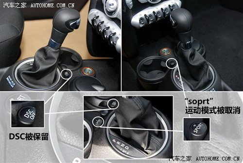 最核心的部位沒有什么不同,1.6升自然吸氣發(fā)動機,它有一點小小的吵,似乎僅僅是為了證明自己的個性,動力對于MINI如此小巧的車型來說也算不上是充足,幾款使用相同發(fā)動機的MINI經(jīng)我們的測試0-100km/h成績都在12秒以上。MINI Cooper Cheer搭載的還是6速手自一體變速箱,但不同的是變速桿前方“SPORT”的小按鈕不見了,不過當(dāng)您在D擋時把檔把向左移,還是可以進入“S”模式。