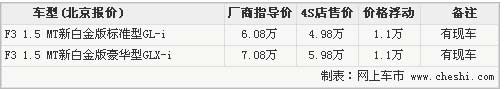 據(jù)比亞迪汽車4S店銷售人員介紹,比亞迪F3目前僅有標(biāo)準(zhǔn)版和豪華版兩款車型在售,兩款車型目前均有現(xiàn)車,顏色也比較齊全。到店購(gòu)車可以享受1.1萬(wàn)元的現(xiàn)金優(yōu)惠,標(biāo)準(zhǔn)版降價(jià)后跌破5萬(wàn),僅售4.98萬(wàn)元。