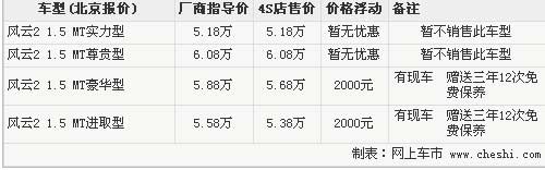 風云2兩廂共有4款車型,指導價為5.18萬-6.08萬。根據(jù)奇瑞4S店銷售人員介紹,目前店內(nèi)銷售的車型只有進取型和豪華型兩款,現(xiàn)在購車即可享受2000元現(xiàn)金優(yōu)惠,此外4S店還贈送三年12次免費保養(yǎng)。