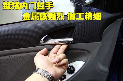 車門內(nèi)側(cè)拉手同樣經(jīng)過(guò)了鍍鉻處理,拉手本身沒(méi)有任何松散的感覺(jué),做工十分精細(xì)。