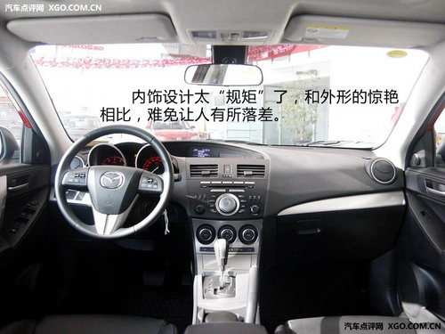 相比外形的夸張與新鮮,新馬自達(dá)3的內(nèi)飾就有些保守了。全黑的內(nèi)飾配色加上銀色金屬裝飾,搭配巨大的炮筒型儀表盤,運(yùn)動(dòng)氣息撲面而來。只是方向盤上的多功能按鈕與中控面板上的設(shè)計(jì)都讓人覺得似曾相識(shí),很難讓人有什么興奮的感覺。