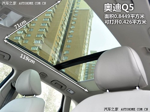 奧迪Q5熱度不減,自上市以來持續(xù)加價(jià)售車,不過我們今天不關(guān)心它什么時(shí)候停止加價(jià),只來看看它的全景天窗是否夠吸引人。應(yīng)該說,跟其他幾款同級(jí)別的車型相比,Q5的天窗看起來要更加美觀,因?yàn)樗鼪]有用一根過于明顯的橫梁將天窗一分為二,雖然說后半部分也并不能打開,但至少視覺上沒有阻隔感,整體性要更強(qiáng)。