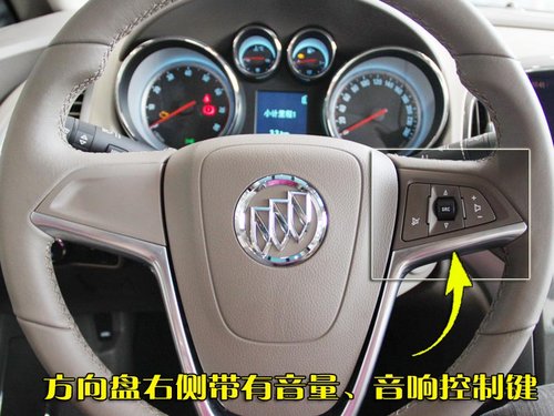真皮縫制的方向盤在10點(diǎn)和14點(diǎn)的位置都設(shè)計(jì)了兩個(gè)凸起,這種設(shè)計(jì)更多的出現(xiàn)在運(yùn)動(dòng)車型上,是為了能夠讓駕駛者更加易于操縱方向盤。在三輻方向盤的右側(cè)是多媒體按鈕,能夠用來(lái)控制音響系統(tǒng)。