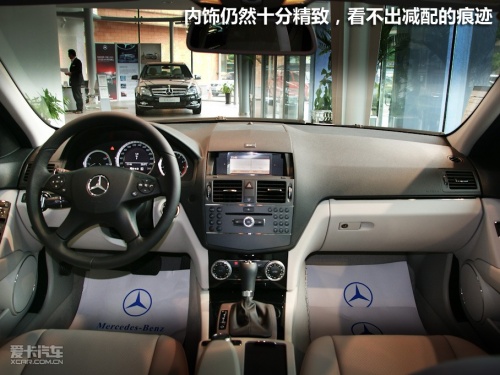 打開車門,我沒有看到粗糙的做工和廉價的用料,整車內(nèi)飾仍然十分細致。通過車內(nèi)閃閃發(fā)光的鍍鉻裝飾與精良的做工能感受到奔馳一絲不茍的造車品質(zhì)。車內(nèi)的減配在不容易察覺的地方,例如座椅電加熱功能被省略,座椅的電動調(diào)節(jié)也從車門處移到座椅下。自動防眩后視鏡也被減配為手動調(diào)節(jié)。
