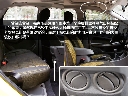 ?怂故菄鴥(nèi)第一款在后排加裝空調(diào)出風(fēng)口的緊湊型轎車,雖然在現(xiàn)在已經(jīng)不是什么大不了的設(shè)置,但是貼心的設(shè)計還是不錯的。不過沒有眼鏡盒是讓編輯我這個四眼感覺很不爽的,畢竟老款?怂故菐в醒坨R盒的。