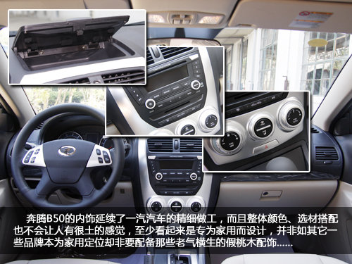 正如開始說的,一汽汽車制造真的是一個(gè)噱頭,因?yàn)橐黄銎返霓I車一般做工都非常精細(xì),這是絕大部分一汽汽車用戶所承認(rèn)的,而且畢竟是一款更趨向于年輕人的緊湊型轎車,所以B50并沒有使用桃木內(nèi)飾裝扮,配合鍍鉻的配飾,其內(nèi)部看起來更加的年輕。