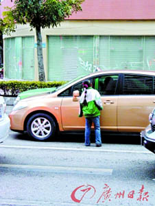 但小孩的“凄慘身世”和“辛勤勞動”同樣沒有換來車主的“同情”,在記者觀察的45分鐘內(nèi),只看到兩位車主向這些小孩掏錢施舍,數(shù)額都是1元。面對小孩的“凄慘身世”,許多車主根本提不起興趣,車窗一直緊閉任由小孩在窗外說話;而小孩用雞毛掃擦車蓋和車窗還特別不受愛車心切的車主歡迎,特別是一些名貴房車,車主只要看到小孩拿著雞毛掃靠近,就連忙搖下車窗,連呼帶喝制止小孩用雞毛掃擦拭。有幾次小孩的動作稍快一點將雞毛掃碰上了車蓋,車主就大聲喝罵幾句。