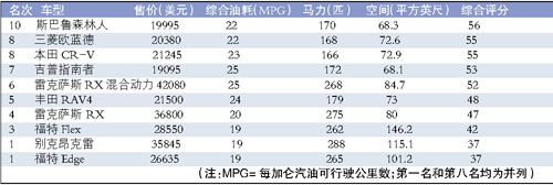 在福布斯公布的2009年度十大SUV中,除了福特Flex和Edge之外,其余八款在中國(guó)均有銷售。(陳鑫欣)