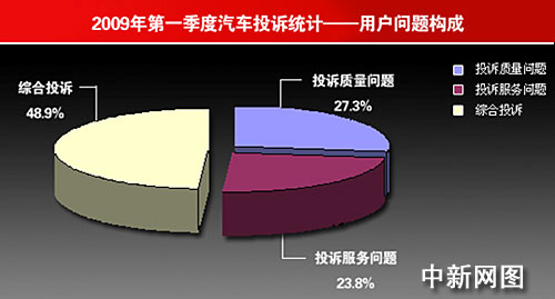 2009年一季度共收到用戶投訴1856例,其中有效投訴為1742例,與去年同期相比,增加了17.8%。一季度汽車產品的投訴量和投訴解決率相比上季度有了較大提高。涉及企業(yè)包括一汽大眾、上海大眾、 東風雪鐵龍、上汽通用五菱、上海通用、長安福特、上海汽車、廣州本田、天津一汽、廣州豐田、吉利汽車、奇瑞汽車等幾十家國內汽車生產企業(yè)。