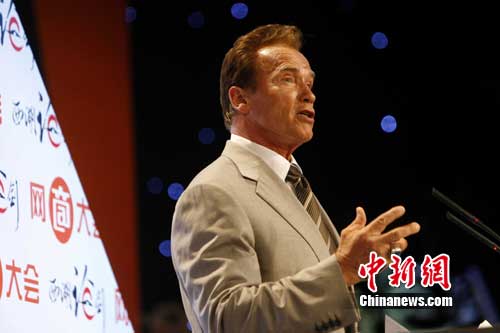 中新網(wǎng)杭州9月11日電(記者 夏毅)9月11日,第七屆網(wǎng)商大會(huì)在杭州舉行,美國(guó)加州州長(zhǎng)阿諾德•施瓦辛格做了主題演講并與阿里巴巴董事局主席兼CEO馬云進(jìn)行了現(xiàn)場(chǎng)對(duì)話。施瓦辛格對(duì)阿里巴巴為美國(guó)加州提供了2萬(wàn)個(gè)工作機(jī)會(huì)表示感謝,并希望今后阿里巴巴能夠在加州擴(kuò)展業(yè)務(wù)。