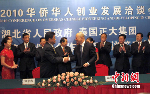 15日晚間出席簽約儀式的正大集團(tuán)董事局主席謝國(guó)民指出,在中國(guó)新農(nóng)村建設(shè)的過(guò)程中,正大集團(tuán)通過(guò)為農(nóng)民提供其缺乏的資金、技術(shù)、管理和市場(chǎng)并采取擔(dān)保等方式,幫助農(nóng)民規(guī)避風(fēng)險(xiǎn),增加收入。正大集團(tuán)希望與中國(guó)農(nóng)業(yè)大省湖北在農(nóng)業(yè)等領(lǐng)域開(kāi)展合作。