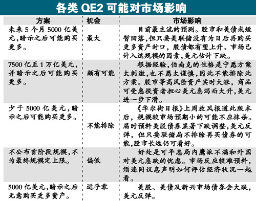QE2已在市場(chǎng)討論兩個(gè)月,但這個(gè)舉措史無(wú)前例,效果無(wú)人知曉,甚至連聯(lián)儲(chǔ)局官員也明顯對(duì)本周應(yīng)推出多大規(guī)模的QE2仍心中無(wú)底。