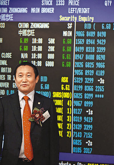 中新網(wǎng)5月9日電 中國(guó)忠旺8日在香港證券交易所掛牌上市,董事長(zhǎng)劉忠田身家達(dá)233億元人民幣,較“2009新財(cái)富500富人榜”榜首江蘇富豪沈文榮的200億元人民幣為多,“晉升”為內(nèi)地首富。
