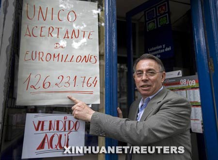 位于西班牙首都馬德里自由女神廣場的“黑貓”彩票銷售店的櫥窗上,貼著一張標(biāo)示,告訴路人“歐洲百萬”頭獎(jiǎng)在這兒售出。