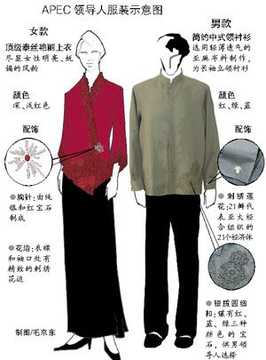 按照慣例,APEC領(lǐng)導(dǎo)人會(huì)穿什么樣的服飾亮相向來被視為“高度機(jī)密”。但這次籌委會(huì)一反傳統(tǒng),預(yù)先展示為與會(huì)的21國領(lǐng)導(dǎo)人設(shè)計(jì)的服飾,讓海內(nèi)外媒體先睹為快。