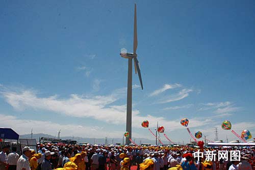 國(guó)家發(fā)改委副主任、國(guó)家能源局局長(zhǎng)張國(guó)寶今天在開工儀式上說,受風(fēng)能資源與電力市場(chǎng)分布不平衡的影響,中國(guó)風(fēng)電的開發(fā)建設(shè)受電力市場(chǎng)制約很大。為此,采取了“建設(shè)大基地、融入大電網(wǎng)”的發(fā)展方式,在風(fēng)能資源最豐富的區(qū)域建設(shè)千萬(wàn)千瓦級(jí)風(fēng)電基地,打造“風(fēng)電三峽”。酒泉風(fēng)電基地是率先建設(shè)的首座千萬(wàn)千瓦級(jí)風(fēng)電示范基地,已核準(zhǔn)建設(shè)項(xiàng)目的總規(guī)模500萬(wàn)千瓦,今后還將建設(shè)第二期工程。