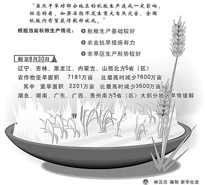 同時,雖然干旱對部分地區(qū)的秋糧生產(chǎn)造成一定影響,但總的看,如果后期不發(fā)生重大自然災(zāi)害,全國秋糧仍有望獲得較好收成。