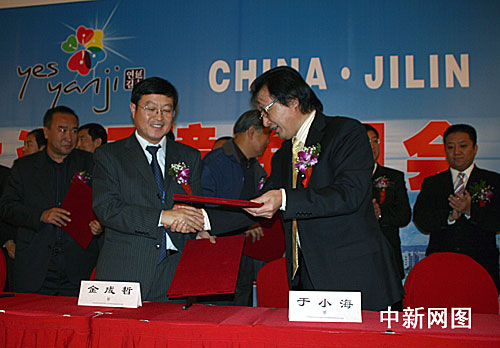 會(huì)上,還舉行了延吉市與北京宇辰集團(tuán)合作總投資十億元,建設(shè)延吉市朝鮮族民俗風(fēng)情園;延吉市與上海金太陽能源科技開發(fā)有限公司合作總投資二十二億元,建設(shè)年產(chǎn)一百二十兆瓦銅銦鎵硒太陽能電磁板和太陽能空調(diào)機(jī)項(xiàng)目等五個(gè)項(xiàng)目的簽約儀式,共計(jì)投資三十三億元。