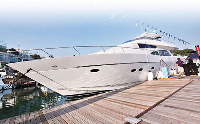 西貢匡湖游艇會昨日起舉辦為期4日的“國際游艇展”,有來自臺灣、法國、英國和美國等共59個參展商,展出逾百艘游艇,并有附設釣魚塔的游艇,展品總值約6億元?锖瓮偨(jīng)理吳宛湄表示,隨著經(jīng)濟好轉(zhuǎn)及不少內(nèi)地買家來港選購游艇。