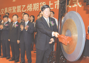 上市儀式上,中國(guó)證監(jiān)會(huì)主席助理姜洋宣讀了《關(guān)于同意大連商品交易所上市聚氯乙烯期貨的批復(fù)》。大連商品交易所總經(jīng)理劉興強(qiáng)主持了上市儀式。他說,聚氯乙烯期貨的上市,既是交易所貫徹落實(shí)黨中央國(guó)務(wù)院“穩(wěn)步發(fā)展期貨市場(chǎng)”要求的重要舉措,也是大商所向綜合性期貨交易所轉(zhuǎn)變的又一個(gè)里程碑。他表示,大商所將不辜負(fù)各界的殷切期望,在保持市場(chǎng)平穩(wěn)運(yùn)行的基礎(chǔ)上,把這一品種做深做細(xì)做精,為國(guó)民經(jīng)濟(jì)發(fā)展貢獻(xiàn)新的力量。