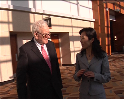 記者:“我現(xiàn)在是在美國內布拉斯加州的小鎮(zhèn)奧馬哈,每年母親節(jié)的前一個星期六,都會有來自世界各地的人來到這個小鎮(zhèn),他們懷著一種朝圣的心理來到這里,是為了一個人:沃倫•巴菲特,今天是伯克希爾哈撒韋公司2008年的年會,呆會有3.5萬人將要進入我身后的這個中心廣場!