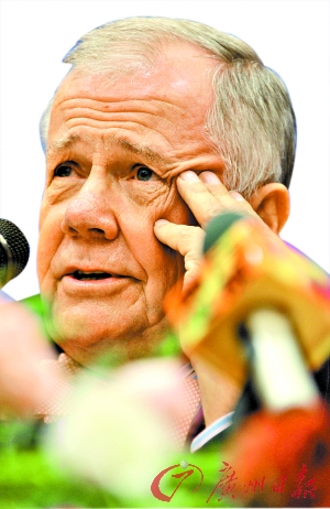 與索羅斯、巴菲特齊名的國(guó)際三大投資大師之一——吉姆·羅杰斯昨日出席了由中國(guó)貿(mào)易促進(jìn)委員會(huì)和廣州市政府主辦、廣州市貿(mào)促會(huì)承辦的第二屆中國(guó)國(guó)際金融服務(wù)貿(mào)易洽談會(huì),他與本報(bào)記者對(duì)話(huà)國(guó)際經(jīng)濟(jì)危機(jī)的發(fā)展及演變趨勢(shì)時(shí)闡述了他的獨(dú)到觀點(diǎn)。