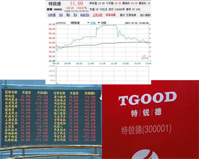 青島特銳德被眾多媒體稱為“創(chuàng)業(yè)板第一股”,第一家上會(huì)、第一家審核通過、第一個(gè)發(fā)布招股書、并獲得創(chuàng)業(yè)板001號證券代碼。今天,特銳德收盤于44元,較發(fā)行價(jià)上漲約85%。當(dāng)初投資特銳德的7名自然人其身價(jià)都已過億。