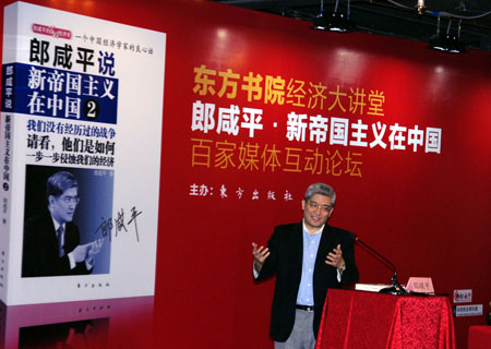 郎咸平于美國沃頓商學(xué)院獲得博士學(xué)位后,曾執(zhí)教沃頓商學(xué)院、密歇根州立大學(xué)、俄亥俄州立大學(xué)、紐約大學(xué)和芝加哥大學(xué),現(xiàn)任香港中文大學(xué)教授。他的主要著作有《誰在拯救中國經(jīng)濟(jì)》、《金融超限戰(zhàn)》、《誰都逃不掉的金融危機(jī)》等,互動在線創(chuàng)始人、董事長兼CEO潘海東主持了本次見面會。