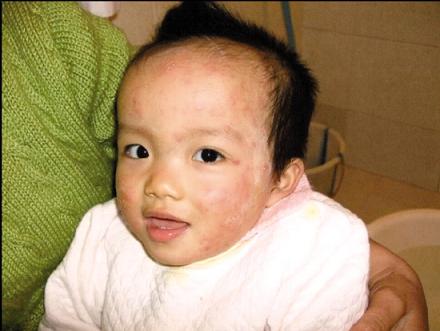 去年11月,我通過電話購物方式,為女兒購買了強生嬰兒天然舒潤滋養(yǎng)潤膚霜。當晚給女兒軒軒使用了。早晨一看,嚇壞了!滿臉紅色的皰!原本光滑細嫩的皮膚,簡直就是被毀容了。我趕忙帶女兒去兒童醫(yī)院,說是過敏性皮炎。為不留疤痕,我?guī)е畠呵扒昂蠛蟮匠啥几鞔筢t(yī)院就診了十多次。