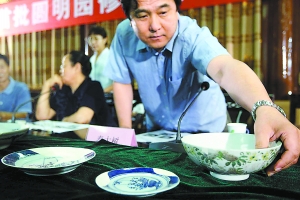 在修復(fù)完成的瓷器中,一件“五蝠捧壽”青花盤引起了國家文物局科技保護專家組組長王丹華的注意,這件破損瓷器上五只蝙蝠中的兩只是在修復(fù)過程中后期補繪上的,王丹華對此不贊同。