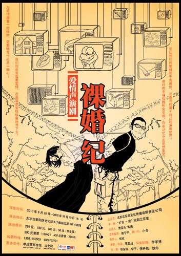 不是演唱會(huì),不是音樂(lè)會(huì),也不是一出單純的話劇,愛(ài)情聲演劇《裸婚紀(jì)》將于9月28日至10月10日在北京9劇場(chǎng)揭開(kāi)神秘面紗。這出反映“80后”草根族面對(duì)婚戀窘境的小劇場(chǎng)話劇,除了有直指人心的臺(tái)詞、構(gòu)思巧妙的故事情節(jié)之外,還擁有一招充滿想象力的“殺手锏”——愛(ài)情聲演。