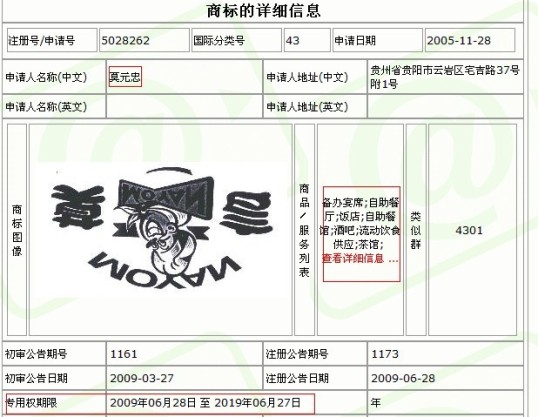 于是,莫元忠于2005年11月28日注冊(cè)了“莫言”餐廳類(lèi)商標(biāo),掛起了“莫言餃子館”的牌子。記者在中國(guó)商標(biāo)網(wǎng)查到,2009年3月27日,“莫言”餐廳類(lèi)商標(biāo)初審公示,同年6月28日正式注冊(cè)成功,專(zhuān)用權(quán)期限一直到2019年6月28日。