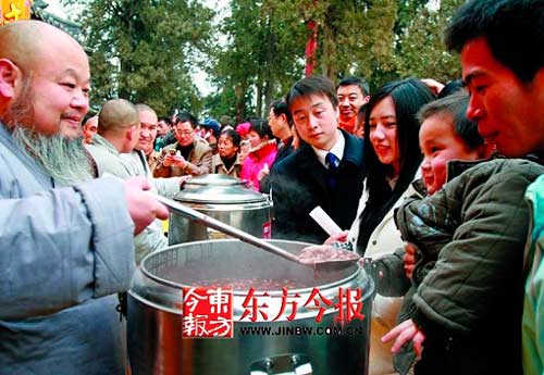 “您今天喝粥了嗎?”記者追問釋永信,他笑而不答。不過,談起施粥的意義,釋永信倒十分慷慨,臘八喝粥,是中華民族的傳統(tǒng),少林寺自去年恢復(fù)施粥傳統(tǒng)以來,國內(nèi)越來越多的寺院加入到施粥的行列,這也是傳統(tǒng)文化的復(fù)興。