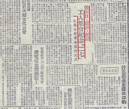 7.1949年2月17日《人民日報》第2版刊登的報道:張家口、唐山、菏澤工人集會,紀(jì)念“二七”,一致表示將革命進(jìn)行到底