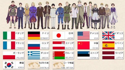 動(dòng)畫片原作者是一名旅美日本人漫畫家,漫畫先在網(wǎng)絡(luò)上連載,然后出版成冊(cè),現(xiàn)在改編成動(dòng)畫片。原作集中圍繞不善戰(zhàn)卻堅(jiān)強(qiáng)的意大利人、嚴(yán)格認(rèn)真的德國(guó)人、對(duì)歐美文化頂禮膜拜的日本人等展開。據(jù)韓國(guó)媒體報(bào)道,原作中還設(shè)置了一個(gè)“不僅依賴美國(guó)人和日本人,還對(duì)中國(guó)人叫哥哥,堅(jiān)持認(rèn)為任何文物的發(fā)源地都是韓國(guó)的韓國(guó)人”,韓國(guó)網(wǎng)民認(rèn)為這“有辱韓國(guó)人形象”。