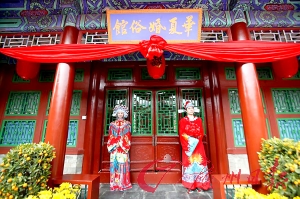 昨日,圓明新園內(nèi)華夏婚俗館正式開館,將向游客免費(fèi)開放,其中光各式結(jié)婚證、訂婚證就有一百多件。記者現(xiàn)場看到,我國歷史上發(fā)現(xiàn)最早的結(jié)婚證書是太平天國時(shí)期的婚書《合揮》的復(fù)印件。