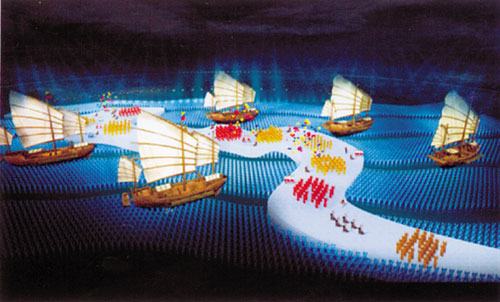 翻開那本厚實(shí)的“標(biāo)書”,不少圖片令人感覺“似曾相識(shí)”,如夢(mèng)似幻的海上絲綢之路、揚(yáng)帆遠(yuǎn)航的鄭和寶船、翩翩飛舞的敦煌飛天……這樣的場(chǎng)景從2008年8月8日那天起,鐫刻在許多人的記憶中。不過,這可不是北京奧運(yùn)會(huì)開幕式的“拷貝”,翻回“標(biāo)書”的封面,“2005年7月28日”的字眼讓人確信,這份方案比北京奧運(yùn)會(huì)開幕式早了三年多。