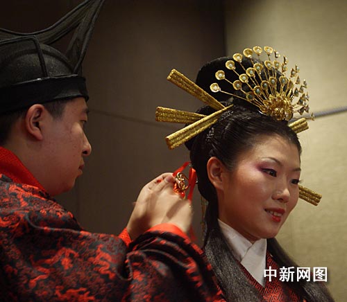 據(jù)婚禮承辦方介紹,本次婚禮由于沒有賓客,所以從儀程環(huán)節(jié)、司禮用詞的設(shè)計(jì),到場景布置,參禮人員的著裝,都更加原生態(tài)化,也更突出了周制婚禮寧靜、典雅的味道。