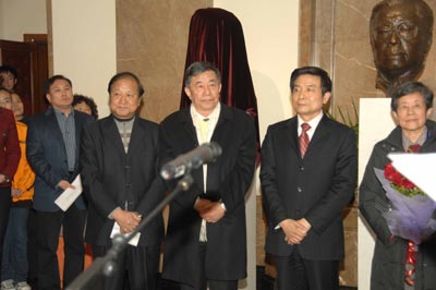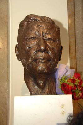 當(dāng)晚,作為紀(jì)念老舍誕辰110周年的重要活動(dòng),由北京人民藝術(shù)劇院組織鑄造的老舍先生頭像雕塑在首都劇場(chǎng)舉行了隆重的揭幕儀式,以此向這位為北京人藝奠定了風(fēng)格基礎(chǔ)的文學(xué)巨匠致敬。