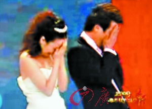 代表場(chǎng)景:千呼萬(wàn)喚之后,新郎“基仔”終于出場(chǎng)。這個(gè)染了發(fā)、梳著雞冠頭的廣東小伙子激動(dòng)地呼喊:“寶貝!”新娘也大喊:“基仔!”重復(fù)喊過(guò)兩遍之后,新郎新娘奔向?qū)Ψ剑瑳](méi)料到用力過(guò)猛撞了個(gè)滿懷。