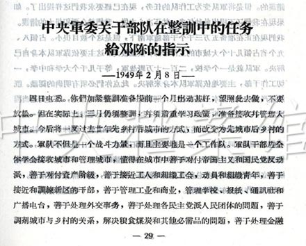 2. 1949年2月8日,中央軍委關(guān)于部隊(duì)在整訓(xùn)中的任務(wù)給鄧(小平)、陳(毅)等的指示