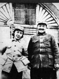 1938年雙十節(jié),由王明的夫人孟慶樹介紹(一說陳賡介紹),40歲的八路軍副總司令彭德懷,在延安娶了北師大著名的浦氏三姐妹(潔修、熙修、安修)中的小妹、20歲的嘉定姑娘浦安修(1918-1991),婚后無子女,但共度戰(zhàn)爭歲月,感情甚篤。廬山會議后,浦安修幾經斟酌,終與彭德懷在60年代脫離關系。當時老彭切開一個大梨,二人各吃了一半。