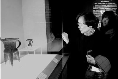 昨日,臺北客人來到上博,立即同上博方面進(jìn)行了極其融洽的商談,由于相談甚歡,遲遲不能結(jié)束,原定的參觀時間不夠用了,所以上博方面只好請臺北客人進(jìn)入地下的貴賓廳,從庫房里精選出館藏珍品進(jìn)行展示。由于來訪的大多是臺灣的文物專家,因此客人們看得十分仔細(xì),甚至帶著學(xué)者的眼光來探究!爸芄闻烤褪瞧崞鞣矫娴膶<遥覀円舱故玖似崞,周院長看得十分仔細(xì)。 ”上博接待人員透露,展示給臺北客人看的包括青銅器、瓷器、書畫等,共10多件重要藏品。