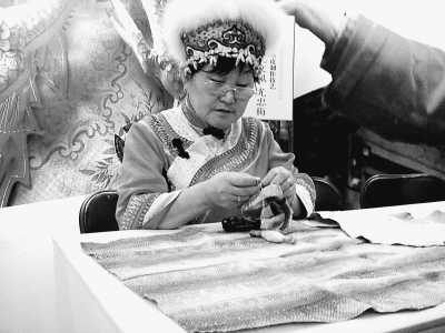 “鞋雖小,要做兩天呢。魚皮從剝下、去鱗、晾干、軋熟、裁剪縫制,工序多,很累人,要花幾天工夫的!闭f話時,她手里的針仍然在來回穿梭。這里的她,是黑龍江同江市津街口鄉(xiāng)漁業(yè)村的漁民尤文鳳,魚皮服制作技藝的國家級代表性傳承人。中國非物質(zhì)文化遺產(chǎn)傳統(tǒng)技藝大展,目前正在北京舉行,大展期間,隨著人流走進(jìn)展館時,我在她的展位前一再流連。