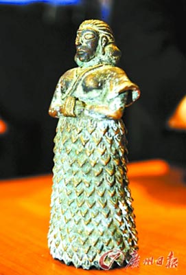 經(jīng)埃及文物部門的考證和鑒定,銅像創(chuàng)作于兩河流域文明時(shí)期,描繪的是一名正在祈禱的婦女(見右圖)。