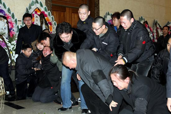 上午8點,千余綱絲手捧白菊花、高舉張文順的紀念畫冊前來吊唁,長長的隊伍排出了百米開外。公眾追悼儀式開始,曲藝同仁李金斗、劉洪沂、謝天順、梁厚民第一列入場。張夫人激動地握住李金斗的手放聲大哭,李金斗連連安慰,說有困難他一定會幫忙。走出大廳,李金斗說:“張文順是我同班學(xué)長,大師哥為人豪爽,非常聰明。感謝德云社能照顧他走完一生,沒有德云社就沒有張文順的名望!