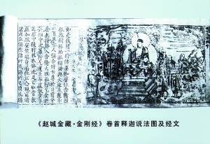 雖然紙卷泛黃、塵穢封積,但字跡清晰可辨。范成法師查點(diǎn)發(fā)現(xiàn),這些經(jīng)卷每版一面二十三行,每行十四字,字體極為古樸。其中印有宋景祐二年(公元1035年)的跋文,捐資刻印的信士?贪嬷,或?yàn)槲宕┠辏炭⒂〗?jīng),極可能是在金代。