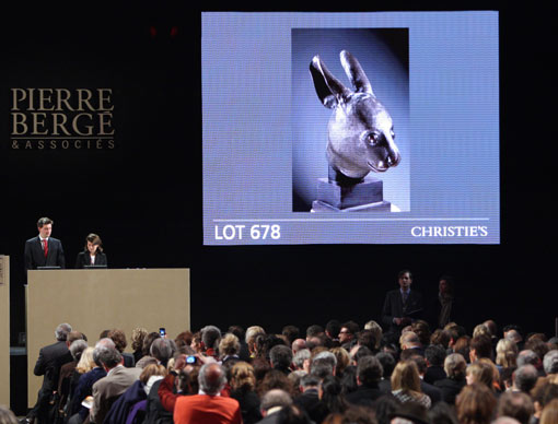 國家文物局在《表態(tài)》中說,佳士得拍賣行(CHRISTIE’S)已于當?shù)貢r間2月25日在法國巴黎拍賣了圓明園鼠首和兔首銅像。國家文物局明確表示: