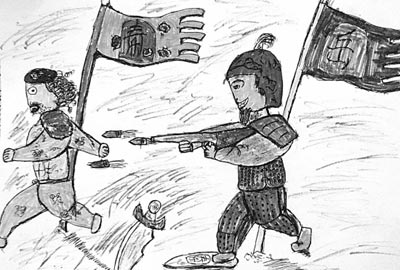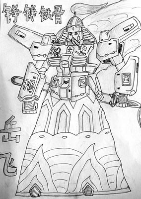據(jù)《錢江晚報》報道,為紀(jì)念岳飛誕辰906周年,岳廟景區(qū)日前特意請來孩子們一起來畫心目中的岳飛。大多數(shù)人畫得中規(guī)中矩,但有一位同學(xué)畫出了“變形金剛版”的岳飛,盔甲被換成了擎天柱的外殼。還有一個孩子畫的岳飛,腳上穿著標(biāo)有“adidas”的鞋子,一只腳還踩著一塊滑板,手上的瀝泉槍換成了沖鋒槍。